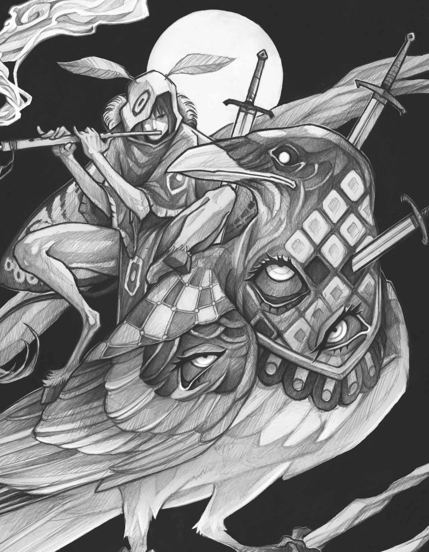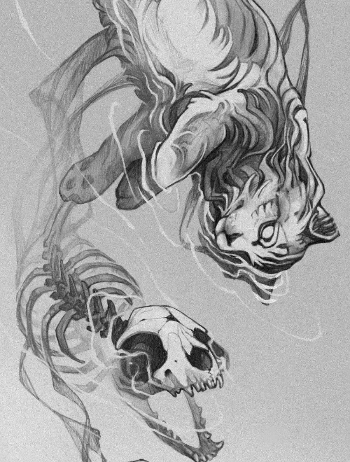 Prints Arte Digital Gato do alem Arte Digital Gato da espada Arte tradicional a lapis Noctum, o corvo caolho